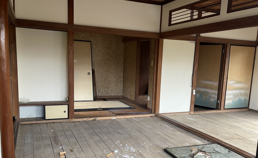 間仕切り壁撤去・天井解体・床材(フローリング・CF・畳)撤去・建具・枠撤去・押し入れ・収納解体・下地までの部分解体